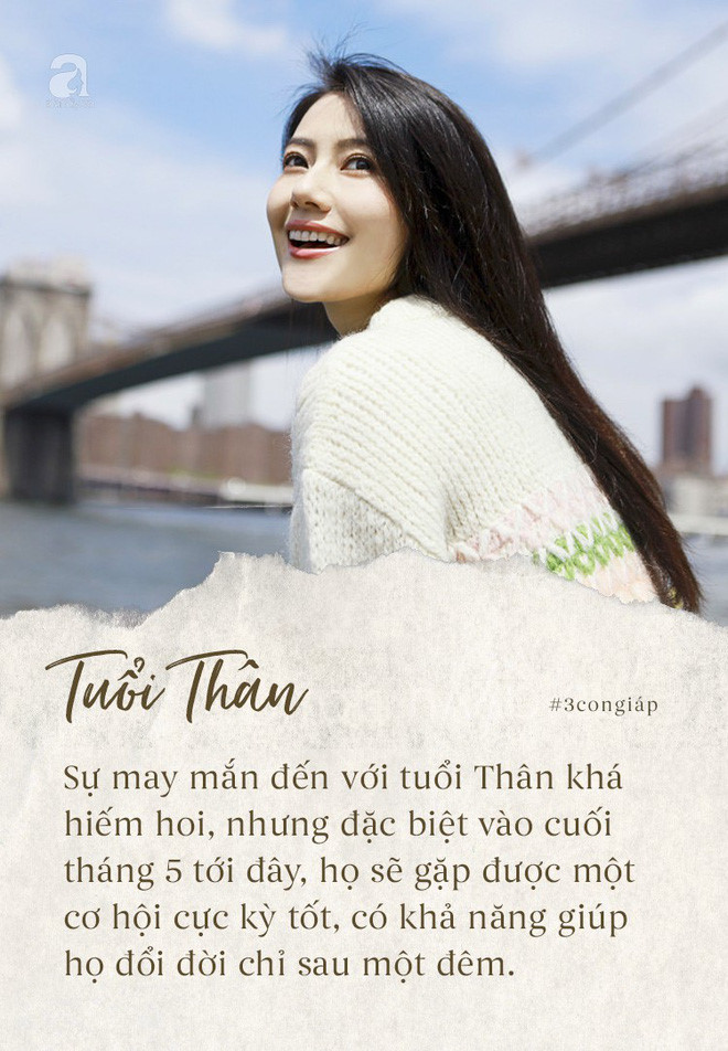 Tuy nhiên, sự may mắn đến với tuổi Thân khá hiếm hoi, nhưng đặc biệt vào cuối tháng 5 tới đây, họ sẽ gặp được một cơ hội cực kỳ tốt, có khả năng giúp họ đổi đời chỉ sau một đêm. Nếu biết nắm bắt thì tài vận sẽ bất ngờ thay đổi, ngày càng dồi dào. Không những thế, bắt đầu kể từ đây, họ sẽ có đà vươn lên một tầm cao mới, mà nơi đó mọi thứ đều sung túc an yên. Sự nghiệp không những ổn định, vững mà mà gia đình còn hạnh phúc, viên mãn khiến ai cũng ngưỡng mộ.